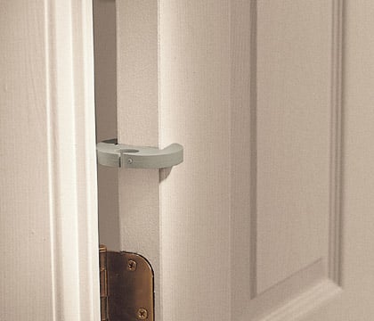 - Can also be placed over the top of the door within 6 inches of the hinge side to reduce the range of motion of the door to prevent pinching on both sides of the door.